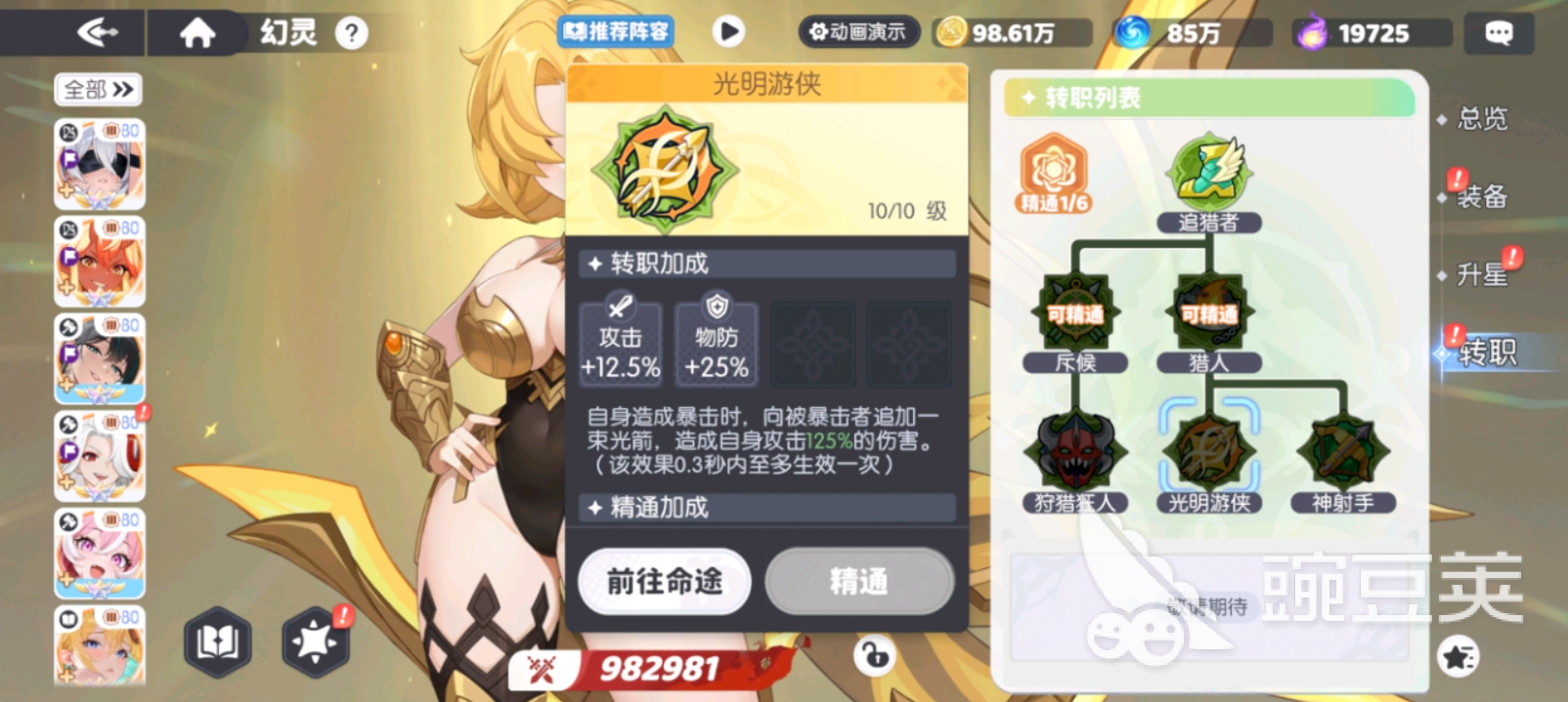 光明游侠属于猎人系进阶路线,提供12.5%攻击力与25%物理防御加成。其核心机制为:每次触发暴击时,自动追加一束光箭,造成相当于阿波罗自身攻击力125%的额外伤害,技能生效间隔固定为0.3秒。该效果无需前置条件或层数叠加,稳定可控,兼顾输出与生存,在单体高爆发与中等持续输出场景中表现优异。