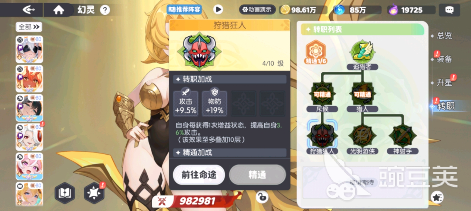 狩猎狂人则归属斥候分支,提供9.5%攻击力与19%物理防御加成。其特色机制为增益联动:每获得一个增益状态(如攻击提升、暴击率提升、移速增加等),阿波罗自身攻击力即提升3.6%,最多可叠加十层。虽然基础攻击加成数值低于前两者,但泛用性强、适配阵容广,尤其适合搭配拥有大量团队增益技能的辅助角色。若输出略显不足,亦可通过装备词条精准补足攻击属性。