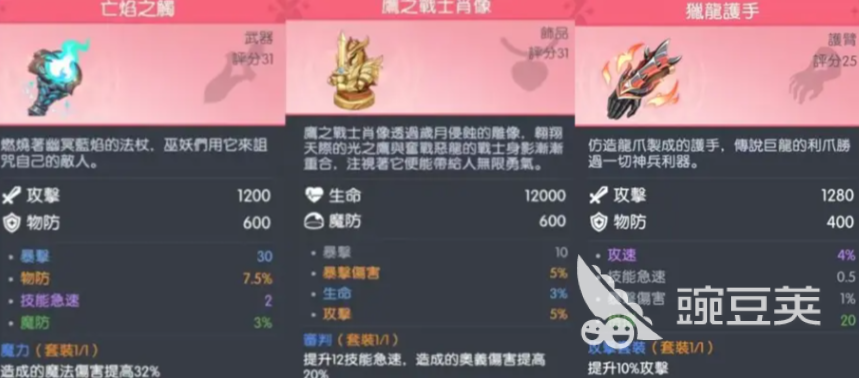 主要的套装应该选择攻击套,四部位全员配置就能稳定提升10的基础攻击,搭配套装附带的技能急速加成,就能迅速的加快奥义技能冷却,还能提升机械球产出的频率,让输出的循环更加的流畅。如果追求爆发性的伤害,也可以替换1~2件爆伤套装,但是需要保证暴击率不低于1000避免伤害溢出。武器方面可以选择亡焰之触法杖,附带的魔力套装效果就能迅速的提升32%的魔法伤害,能符合阿瑞斯的输出机制。