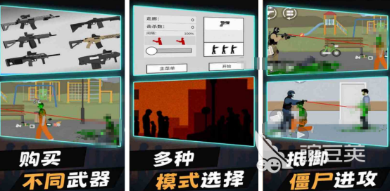 横版平面的画风所展现,采用传统的物理引擎技术,在屏幕上都有相应的控制按键,通过左右手相互配合的方式,左手控制人物角色合理走位,而右手就可从炫酷的武器当中正确挑选,这里所包括的武器类型多样化,有冲锋枪或者是。狙击枪等等,每种枪械的操作方式都完全不同,而大家也可在事务所模式当中一路去寻找大量的僵尸,直接将其击中。一旦击中失败之后就会让对方反过来攻击自己。
