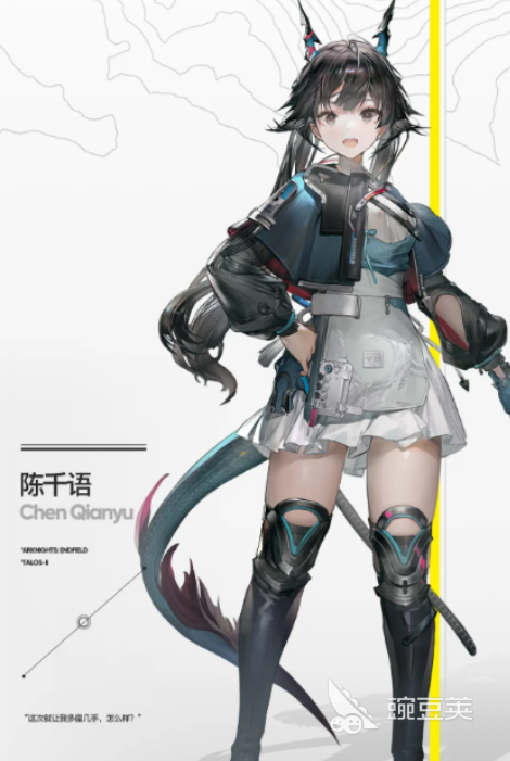 陈千语是特勤干员,因为真龙后裔的身份,她的身体素质和天赋比一般人高出不少。从小就开始练武艺学战术,这些训练不仅让她掌握了很高的战斗技巧,心理素质也比同龄人强很多。她的大招打出来之后,会先把敌人击飞到空中,接着连续斩击八次,第一下会给目标加上破韧状态,后面每一下都会造成物理伤害。