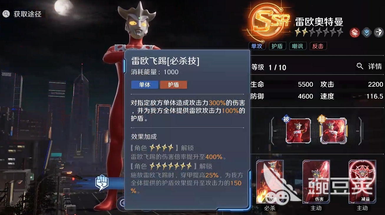 若要提高全队的生存能力,雷鸥是不错的坦克位人选,他不光自身有着极高的坦度,还能通过必杀技位己方全体施加护盾,可有效地缓解队伍的生存压力。最重要的是,雷欧的必杀技也有着不俗的攻击倍率,可对单体目标造成极高的爆发输出,能力很全面。