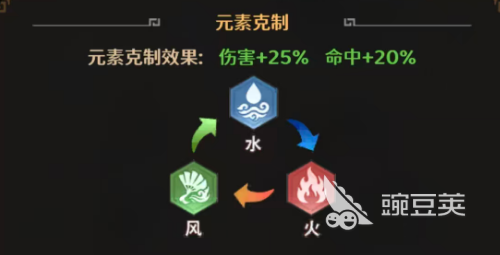 光环属性里面不同的元素对应的属性也是不一样的,火系对应的就是燎原光环,而混沌对应的是玄冥、风系对应的是凤鸣,水系对应的是沧溟,不同的元素克制效果里面是大家熟悉的三角克制风克水,水克火,火克风,而在混沌元素里面其实是不在这个克制关系加成里面的,所以很多玩家说要在进行这种搭配的时候都会首选混沌系列里面的武将,每一种克制关系里面如果达成克制的话,会增加25%的伤害以及20%的命中,在各种竞技场当中,其实大家可以根据对手目前上阵的角色所占元素更多的武将来进行调整,如果克制住对手的话,那么这里增加的胜算自然也会更高一些,而后期在属性光环加成效果当面大家也要注意,每一个元素系列当中大家最低是需要有两个元素武将上阵,才可以激活对应的光环效果,一般在达成6个光环效果的时候,造成的效果是最强势的。
