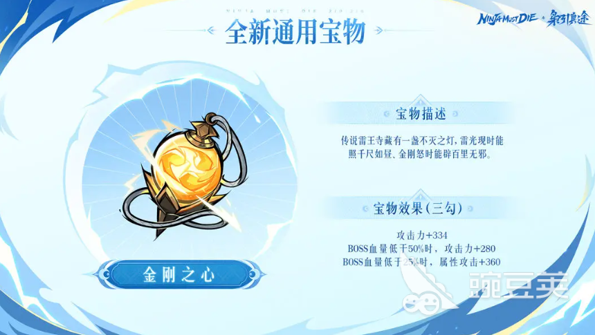 全新通用宝物【金刚之心】同步实装。该宝物设定源自雷王寺秘藏不灭之灯,基础属性为攻击力+334;当BOSS血量低于50%时,额外提升攻击力280点;血量低于25%时,进一步激活属性攻击+360效果。获取途径为“华光藏宝图”限时玩法。