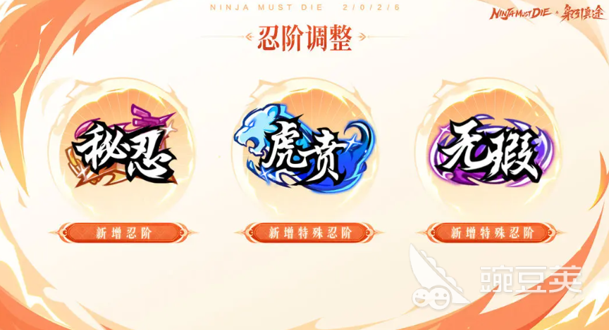 忍阶系统迎来扩展,新增三大进阶层级:秘忍、虎贲、无瑕。其中秘忍为禁忍之后的最高段位,晋升可获金钥匙等稀有资源;虎贲为鹰扬角色专属进阶形态,需满足24名作战忍者命格均达6层方可解锁;无瑕为神行者进阶路线,通关220关故事模式且全程无伤即可激活。