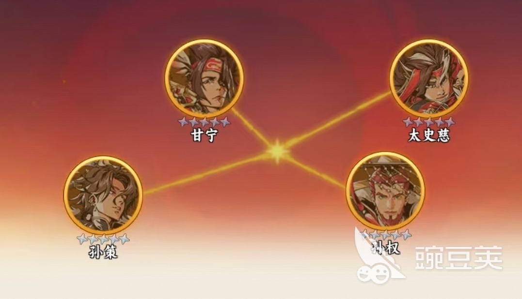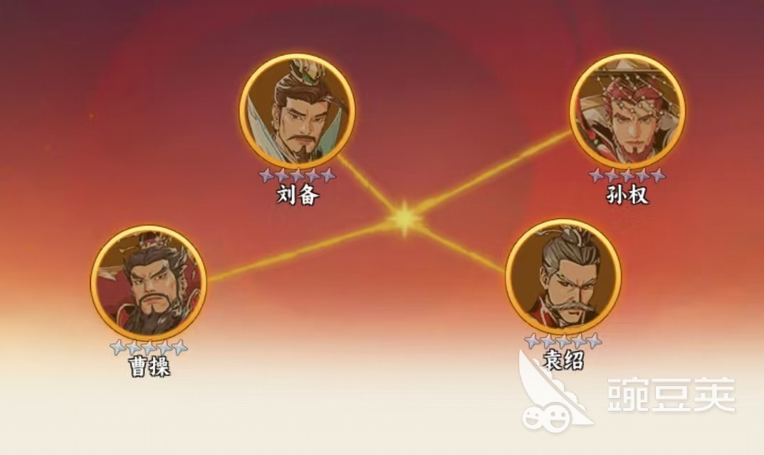 在阵容协同层面,优先激活“制霸江东”四人组(孙权、孙策、甘宁、太史慈)可触发完整羁绊效果:战斗前两回合全队暴击率提升;孙策首动触发“小霸王”效果;每回合开始时四人各叠加1层“制霸”,分别提供增伤与减伤双重属性增益,形成攻防一体的正向循环。另一关键羁绊“关东诸侯”建议由曹操、刘备、袁绍三人组成——开局即为全体友军附加“同辉”状态,提升整体输出;且只要曹操存活,每回合可对敌方施加“压制”效果,限制其治疗收益,与孙权的治疗反制形成策略互补。