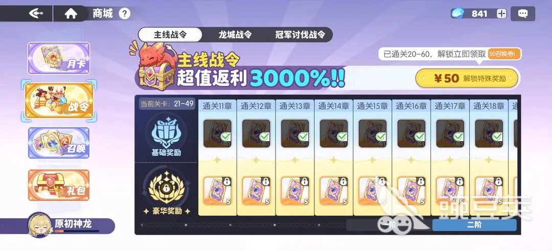 普通战令为性价比突出的周期性投入。除稳定钻石返还外,还包含实用的号角类道具(用于战力增幅)及通用抽卡资源,整体奖励结构均衡,资源转化链路清晰,是兼顾成长节奏与资源储备的理想选择。