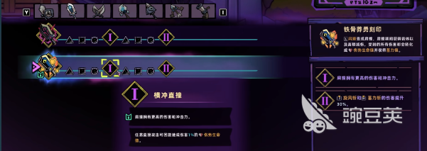 铁骨莽勇刻印对于莽夫玩家而言是一个主要的福音,可以将闪避技能替换成肩撞。在肩状期间就会拥有霸体的效果,还可以获得高额的减伤,受到的所有伤害都可以转化成伤势生命值,还能同时累积积蓄的力量。一级肩撞时就会拥有不错的冲击力和伤害,可以用来突围,还可以先手控场。在二级之后,不仅旋风斩和蓄力斩可以提升30%的伤害,还能解锁横冲直撞的效果。任意直接攻击就可以恢复造成大概1%的生命值,续航能力可以提升。