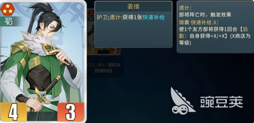 后期护卫角色当中大家可以用的就是姜维,姜维他的护卫效果带来的防御其实是需要其他武将卡搭配加成的,每一个回合当中同样是需要补给卡来进行支援,提供了资源之后,他跟曹操放在一起也是可以让我方阵容的输出没有那么多的压力,最后加入一个徐庶,整体的阵容基本就搭配成型,这样的话整体有足够费用可以消耗的时候,提供的补给也是非常多的,而且其中每个友方武将都会有足够的恢复能力,如果此时用到六费卡的话,大家就要注意徐庶的强度有一个非常高的上限可以提升起来。