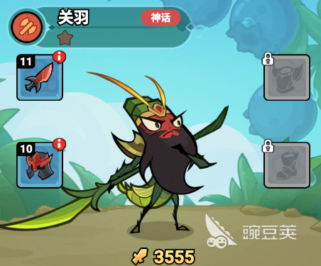 可以将关羽,鲁肃,还有周泰搭配在一起。这三个武将放在一起就会给玩家带来更多的优势,可以先来看一下关羽,这就是一个单体爆发的刺客。可以把大刀提升到11级,那才能够体现出螳螂的真正威力。技能本身就会有破甲的效果,大刀一挥就可以直接斩断敌方的虫壳,在阵容中就是一个核心输出。不过这一个武将也有一些缺点,身板比较脆,容易会被集火攻击,因此一定要选择合理的搭配。