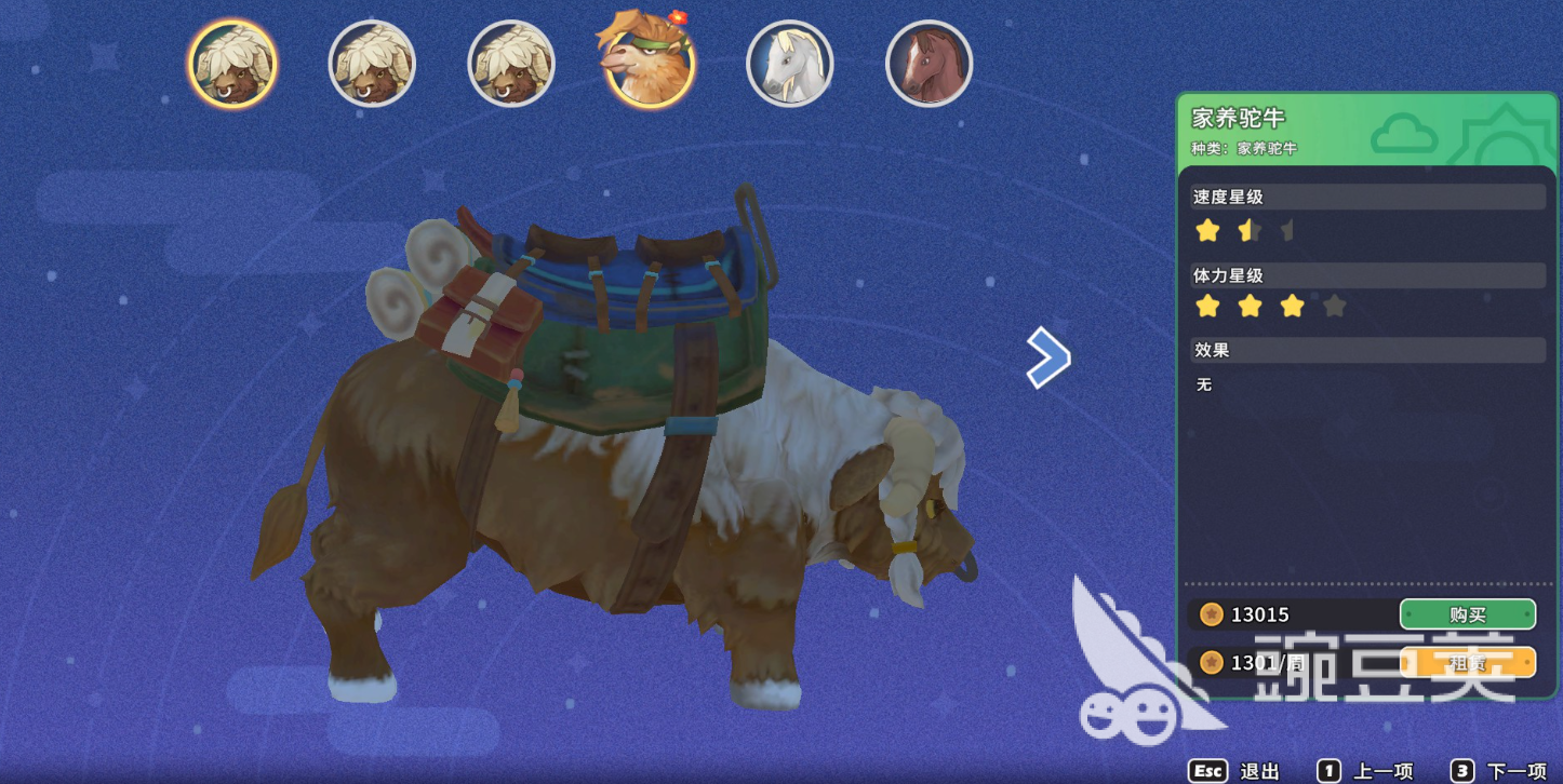 另一种具有代表性的则是驼牛,驼牛本身拥有着高容量,低移速的特点,而它的价值就体现在巨大储存空间上,巨大的储存空间能够提高物品的携带上限,这对需要装载更多材料的玩家们来说是无可替代的,并且容量够大,也能够大大减少坐骑在每个地图之间的来回往返次数,提高资源获取的效率,而且在此期间,驼牛本身的高体力储备也能够让他长时间适应在外作业的需求,能够持续长时间的进行采集,如果需要长期建设的玩家们,那么驼牛则是最优解。