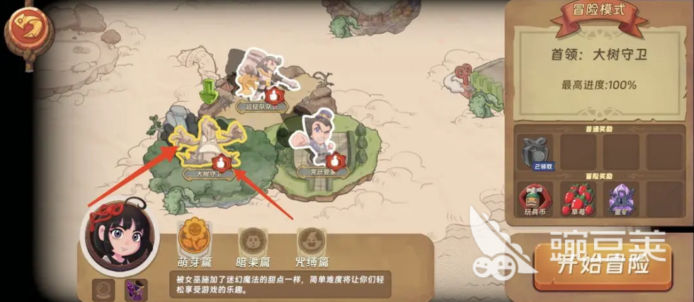 玩家在获取道具的时候,第1步其实先要获取神秘的果实,而这个果实是藏在大树守卫关卡这里,在这个时候,玩家如果来到了这里,不需要先去挑战,而是直接看着树上挂的一个小巧的果实。玩家直接点击这个果实,就能够把这个果实收入囊中。