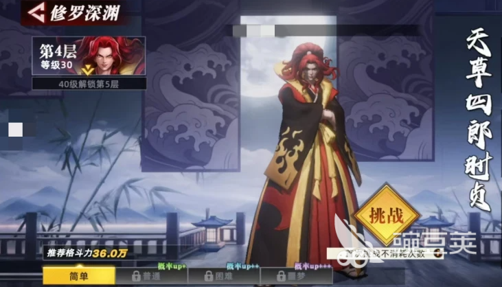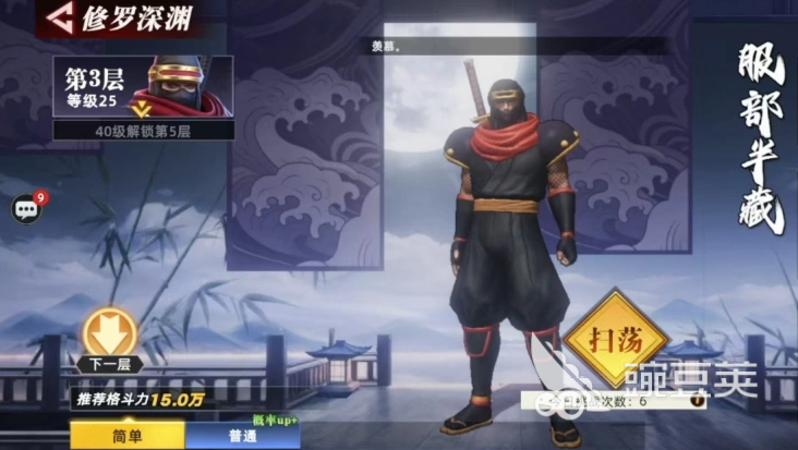 想要挑战修罗深渊很简单,玩家在地图中找到MPC就能开启入口。每一层都有专属守关的BOSS,难度会伴随着乘数稳定的提升。前面4层的Boss配置还是比较明确的,第1层,第2层就是霸王丸,第3层是服部半藏。第4层就是天草四郎时珍,第5层就需要角色必须达到50级才能够解锁。后续更高的层数也需要满足对应的条件,在挑战时次数方面有一个小福利,第1次进入不会消耗次数,之后每天都有固定的挑战机会,建议大家要做好充分的准备,然后再出手。