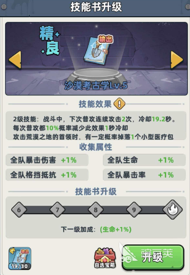 在挑战水元素的时候,技能书的搭配会直接影响战斗的顺利程度。水元素本身比较怕沙漠类的技能效果,所以队伍里最好有一个人能带上对应的技能书,沙漠考古学在战斗中可以比较快速的生成血包,让队伍在长时间消耗中保持状态。另外,因为水元素的血量不低,如果不想带太多偏治疗的角色,就需要靠急救专精补充血量,让队伍在关键的时刻能稳住血线。