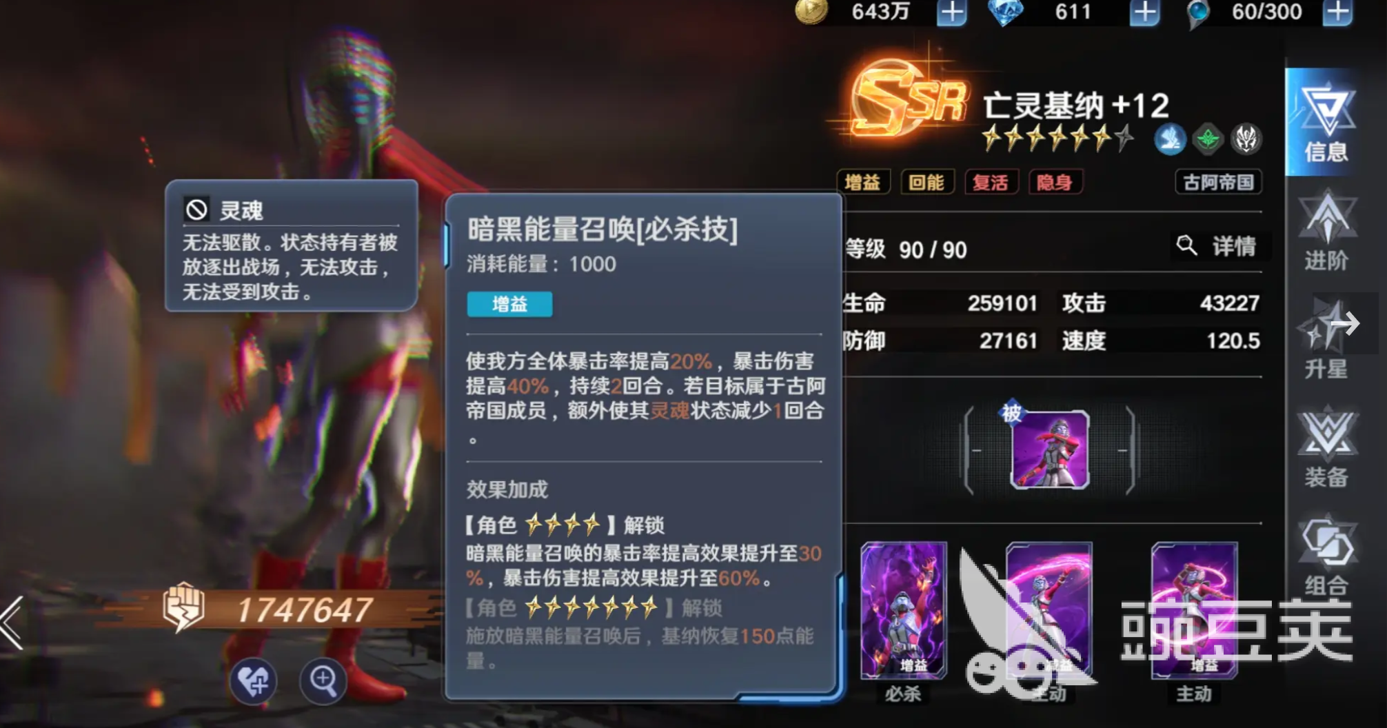 奥特曼光之战士亡灵基纳的技能机制是依靠一套把高额增伤和精准驱散完美结合的辅助战斗体系。亡灵基纳的普攻具有很强的易伤性,高频的鞭击能将主输出位的爆发收益放大。这种将单体破防和不可驱散的全队增益深度绑定的逻辑,使该角色在面对高防御BOSS时具有很高的战术权重,在触发技能能量增幅的时候,可以给全队提供两回合的属性跃迁。