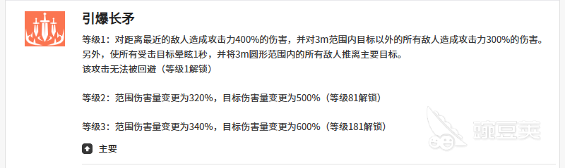 这里利用米里昂的主要技能可以带来引爆长矛的能力,此时进行攻击会对距离米里昂比较近的敌人造成400%的攻击,这个数值还是不错的,另外还可以对3m范围之内除了主要输出目标以外所有的敌人,再一次造成攻击力300%的伤害,虽然这一次的伤害不是达到了很高的数值,但是毕竟第二次输出的连招里面,是一个群伤效果,而受到所有伤害的敌人身上都会达到1秒的眩晕,并且在此时将3m范围内的敌人都推离他攻击的主要目标,这个攻击没有被对面回避的时候,其实大家就可以快速的将敌方的输出角色孤立出来,这样的话选中一个主要目标进行输出,后期就可以很快的带来集火的能力。