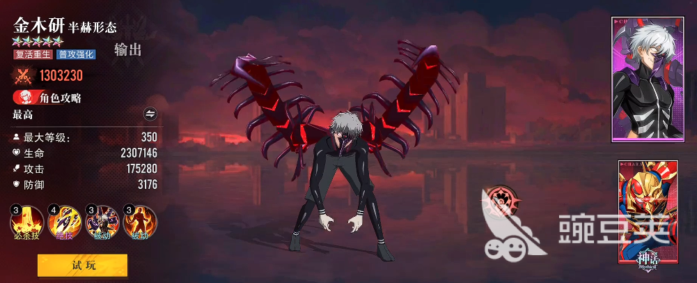 这里首先为大家推荐的几个角色当中第一个可以培养的就是金木研,金木研他作为很多团队里面会用到的核心角色,在这里第一个为大家介绍,也是因为他有一定的爆发伤害,输出效果,那么在前期容易获取的同时,他在战场机动性上面有灵活的动作能力,在后期通过形态变化的时候,技能效果也可以对大多数的敌人造成穿透类型伤害,同时在对敌人造成此类伤害时,他可以给自身带来一定生命恢复,所以当前作为全能核心角色培养起来的话,可用性非常高,那么也不存在他后期躺冷板凳的可能性了。