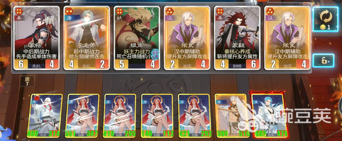 汉阵营其中可用的卡牌里面有王昭君以及李广,这两张卡他们基础达到了四费强度都可以让掌上的能力带来双重核心,因为他们俩释放的输出跟控制都是可以同时放在一起用的,有了这样的输出基础,后期再搭配其他卡牌的时候要注意阵营里面其实可以搭配一些六费卡,虽然六费卡当前在使用效果上面褒贬不一,但是如果大家用过卫子夫和霍去病之后就会知道他们俩能够达成的上限能力确实是非常完美的,而且这两个角色相对于其他角色来说,获取难易程度没有那么高,而且阵容强度当中如果完成汉阵营的搭配,那么前排是可以放双核心的,此时整体阵容强度到位以后大家就可以造成更多的场内效果了。