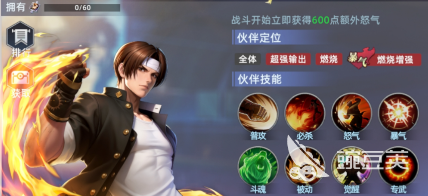 该阵容以“异常状态叠加+持续伤害压制”为核心思路,围绕草薙京构建体系。其必杀技具备高额单体倍率,并在命中后赋予自身火焰护盾;敌方攻击该角色时将被反制点燃,且对已处于燃烧状态的目标造成额外增伤。其怒气技可对全体敌人施加1层燃烧效果,为全队输出提供稳定Debuff基础。
