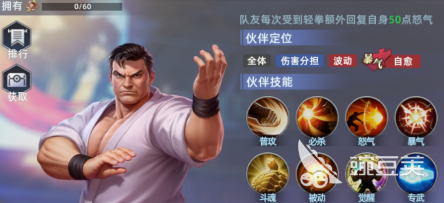 前排承伤由坂崎琢磨承担。其必杀技可使指定敌方单位进入完全免伤状态,同时恢复自身生命值;怒气技为多段锁定打击,回合结束时触发超然伤害。当生命值低于阈值时,自动激活暴气回血机制;升至2星后解锁重拳被动,实现持续生命续航。比利则定位为功能型削弱者,其必杀技可降低目标必杀技与怒气技的免伤率,显著提升队伍整体破防能力。