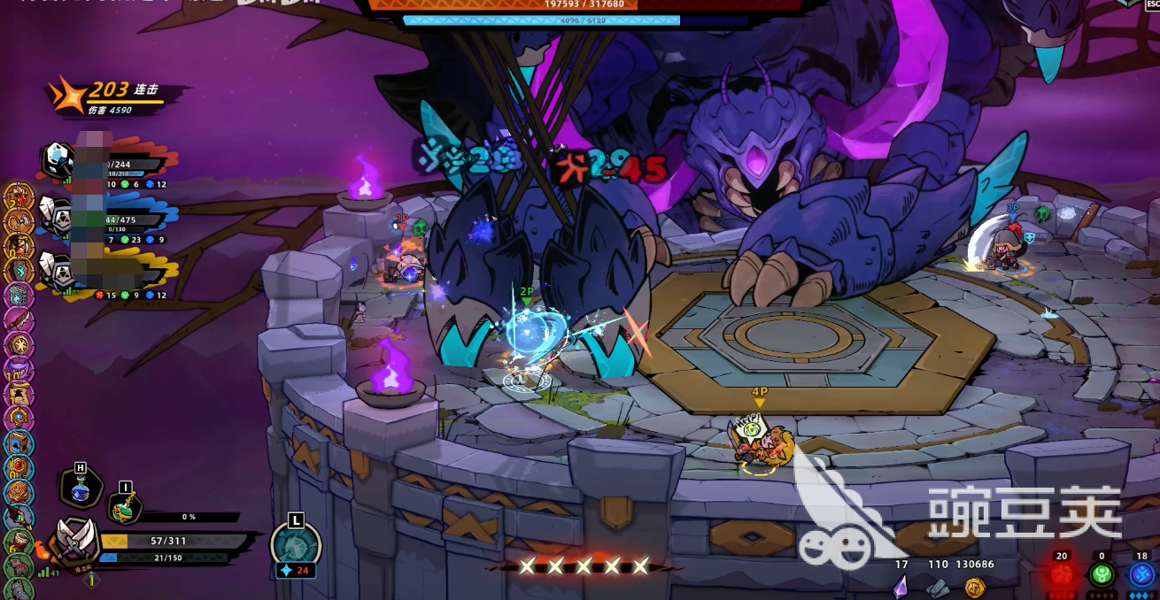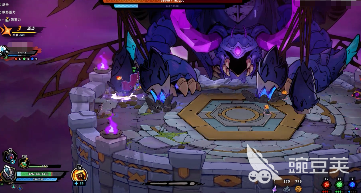 第一阶段中,Boss移动迅捷,常以跳跃式位移扰乱玩家预判,其唯一稳定输出窗口出现在落地静止瞬间。推荐配置冰冻炸弹+无限手套组合:前者可概率冻结目标,后者保障投掷频率,实现控场与压制同步。优先集中火力削减其蓝色能量条(即护盾值),一旦护盾归零,立即转火攻击前肢关节部位,可延长虚弱时间并削弱后续阶段攻速。若符文搭配选用绿色+蓝色系,有概率合成“全金属风暴之斧”,该武器具备范围吸附与持续削韧效果,大幅优化第一阶段节奏掌控。