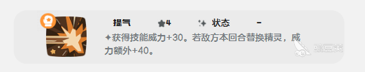 不过这里也要注意,他在场内其实要想自身多次使用到这个精灵技能的话,一定要注意,后期可以带一些恢复类型的技能效果进行搭配使用,这样就可以让他达到多次触发威力提升的效果,另外他可以选择的精灵技能当中还可以带一个提气的效果,利用这个技能,它可以在初始的情况下给自己带来30点的威力加成,而且在敌方行动的回合当中,如果没有出现替换精灵的话,那么这里在接触30的数值当中还会有一个额外的40点加成,所以放在一起用的话,大家只要成功的触发后面的那个条件就可以达到合在一起70点的威力加成,比第一个推荐他的带的技能当中带来的威力加成还要多。