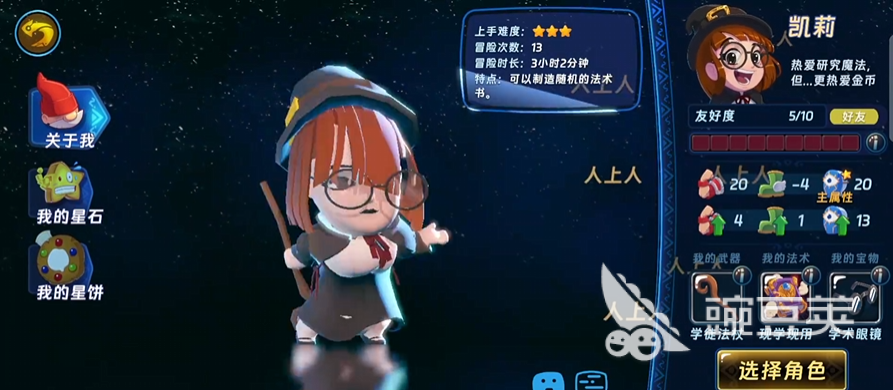 首位推荐角色是凯莉,初始即送的免费远程法师。定位为法术书生成型输出,无需复杂操作即可触发随机法术效果;面板属性中魔法攻击成长率突出,技能释放频率高且附带范围判定,非常适合新手在前期森林图鉴中稳定清怪、安全控场。