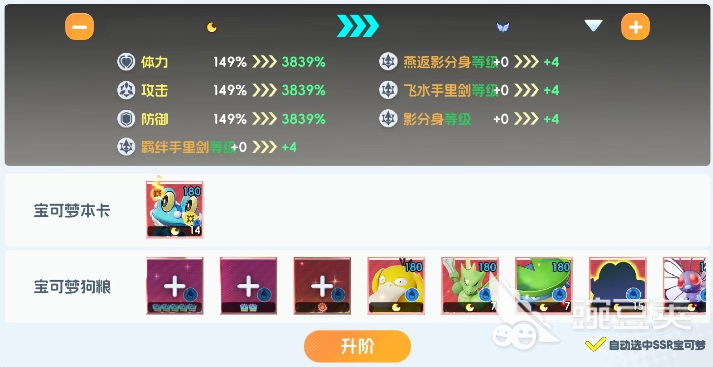 要想在宠物集结里获得超级甲贺忍蛙,玩家们需要帮助呱呱泡蛙完成MEGA进化,才能令它从原本的SP级变为UR级,成为超级甲贺忍蛙。这一过程所需的养成素材非常多,人们需准备好14只呱呱泡蛙的本体,以及1只皇冠5阶的宝可梦,1只皇冠2阶的宝可梦、1只宝可梦以及43只月亮1阶的宝可梦,且所有宝可梦素材均为雨属性,否则无法帮助呱呱泡蛙进行升阶。除此之外,超级甲贺忍蛙的MEGA进化卡也必不可少,该道具需要在MEGA兑换商店开启后才能换购。准备好这一切后,等呱呱泡蛙进化到可开启MEGA进化的品阶后,便能消耗超级甲贺忍蛙的MEGA进化卡来令呱呱泡蛙完成最终的进化了。