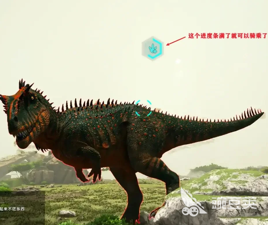 当你拖着尸体靠近鲨齿龙,到一定距离的时候,它就会过来吃掉你手里的尸体。这个过程中你会看到,驯服进度条开始增长,不过增长的速度,跟你玩的服务器倍率有关系。如果是倍率比较高的服务器,进度条涨得就快一些,要是官服或者单机默认倍率,那可能就需要多喂几次。等到进度条满了以后,鲨齿龙身上会出现绿色的标记,这表示它进入了友好模式,这个状态会持续600秒。在这段时间里面,你可以直接走过去骑到它背上,不用担心被咬。
