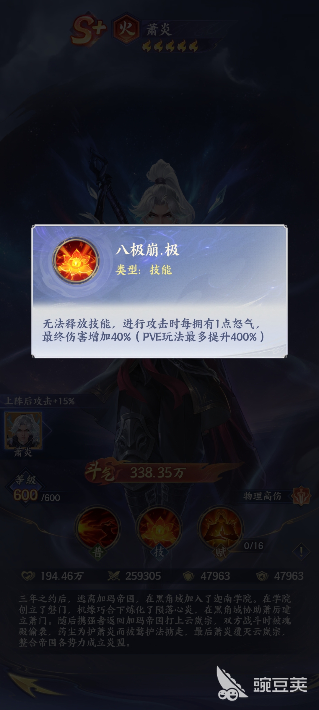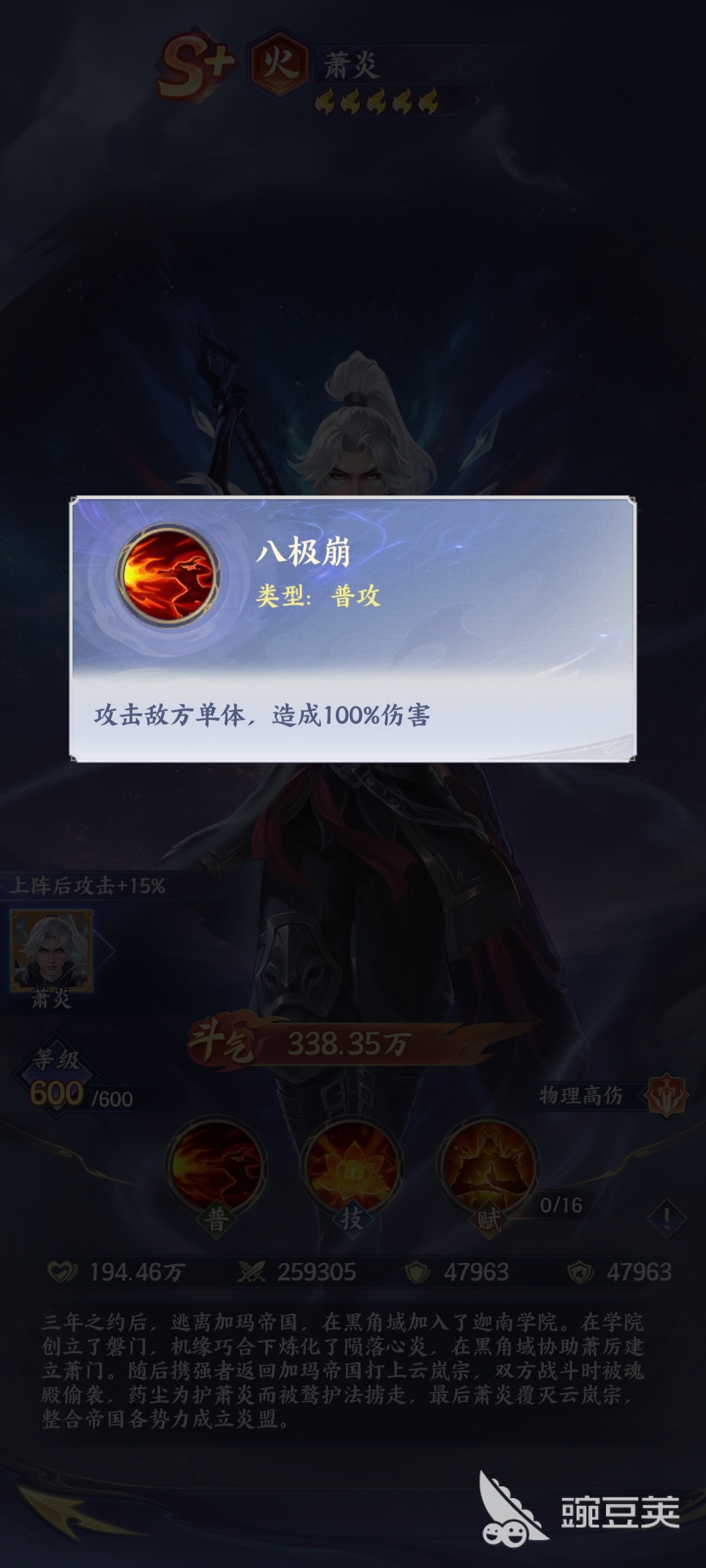 要说火属性的萧炎实力也是比较强悍的,他自带八极崩的技能,能够有效地颠覆传统的输出,能够让玩家在体验萧炎的时候,可以直接使用简单的普通攻击技能,并且还可以利用怒气值直接堆积出大量的伤害,其实玩家通过相关数据可以了解到,萧炎的输出端跟生存端都是非常厉害的,而它是物理高伤害的定位,简单来说就是在战斗的过程当中,它能够把输出最大化。
