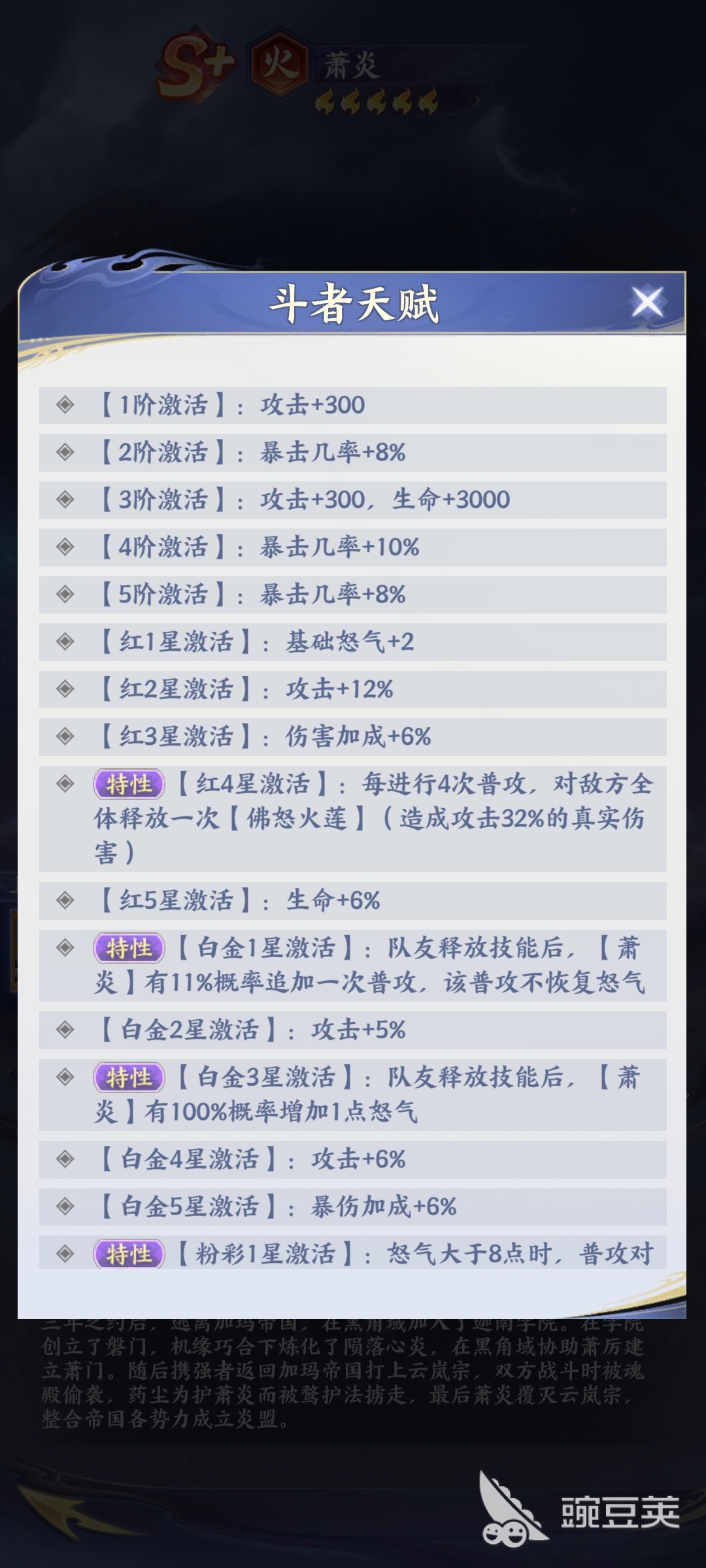 玩家在利用萧炎的时候,如果想要让他的伤害值达到最大,这时候也需要有效的注重他的天赋体系。比如红一星,激活的是基础怒气以及核心的起点,在这样的情况下,能够让他在刚开始体验游戏的时候就直接让伤害加成。如果此时此刻玩家利用消炎的时候已经成功的解锁了红4星。这时候他每4次普通攻击技能将会释放佛怒火莲,在这样的情况下,能够有效的提高他的输出伤害,并且他的攻击,真实伤害能够有效的无视敌人的防御。在这样的情况下,能够有效的帮助自己的队伍清理杂兵,在面对那些实力比较强悍的大boss时,他往往也能够打出不错的伤害。