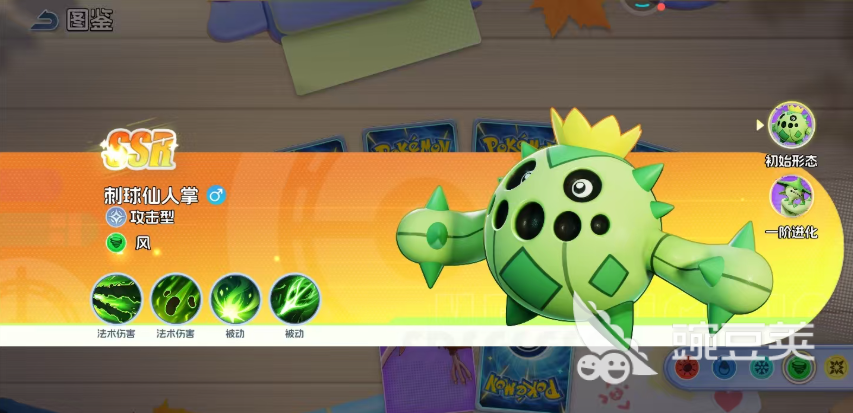 初始的形态就是刺球仙人掌,圆滚滚的身躯上面全部都是尖锐的倒刺,作为一个风属性的攻击型宝可梦,战斗的风格主要是以隐忍还有反击作为核心。被动技能在受到攻击时就可以反弹一部分的伤害,并且还会施加一个微量中毒的效果,可以给后续的进化埋下一个伏笔。此时的刺球仙人掌还是需要大家去耐心的培育。