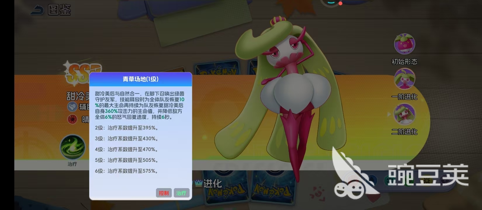甜冷美后的核心技能是青草场地,这就是作为团队核心的证明,这一个技能可以让全体的队友在一瞬间恢复10%的最大生命值,还能持续提供自身攻击力的治疗,有效降低敌方全体6%的怒气回复速度。这一个技能还是很有优势性的,也就意味着在对战的过程中,它并不是只是单纯性的治疗手段,可以压制敌方的怒气循环,然后创造出更多的战术优势。在PVP的战场上,一个满级的青草场地,就可以直接打乱敌方的输出节奏。