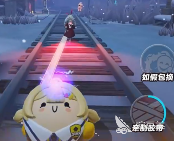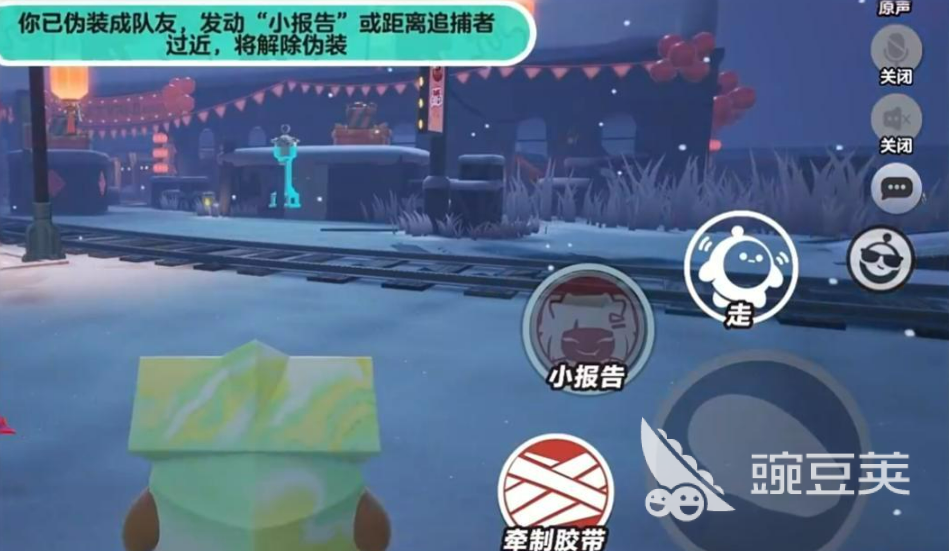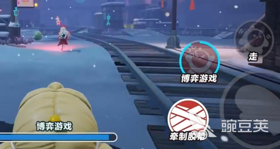 还有一个技能是牵制胶带,可以丢出胶带卷去粘住追捕者。这个技能用起来有点技巧,需要围着追捕者逆时针绕圈,来增加缠绕进度。缠绕成功后,可以让追捕者减速,而且减速效果会越来越强。实战中配合队友使用效果会更好