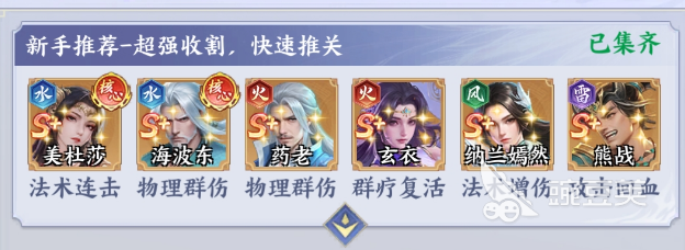 美杜莎+海波东+药老+纳兰嫣然+熊战+玄衣:在这一个阵容中,美杜莎就是水系核心输出,法术连击这一个特性在同一个回合内就可以触发多次技能,早就已经成为队伍中的主要伤害来源。海波东则是强力的物理性群伤角色,可以给后续输出扫清障碍,能迅速的清理敌方的前排杂兵。药老就是物理性群伤,和海波东就会形成双火群攻压制,迅速的压低敌方的血线。纳兰嫣然就可以提供法术增伤光环,迅速的提升美杜莎的输出效率,这套阵容就会通过双群伤迅速清理现场,配合增伤的能力。这个阵容让新手玩家在前期就能够迅速的积累资源。