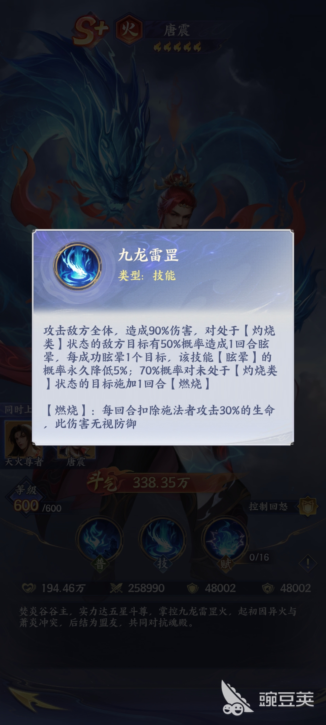其实玩家在选择唐震的时候,也需要了解它的核心技能,比如九龙雷罡,它能够起到控场的作用。在战斗的过程当中,他如果施展了群体伤害,那么将会对敌人造成攻击伤害。这样就可以为输出做好充分的准备。当然它还能够燃烧。施展这个技能之后就可以对未处于灼烧状态的敌人进行施加燃烧,通常情况下每回合将会扣除敌人的攻击生命,并且这样的状态是不需要考虑敌人的防御性能。额外它还有眩晕控制的作用。