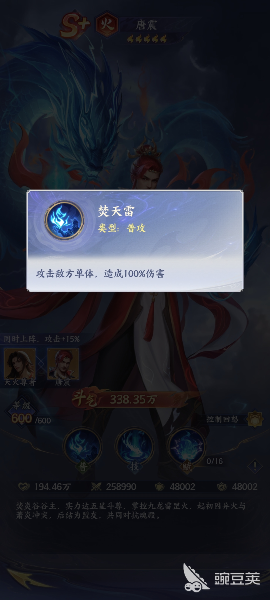 斗破苍穹唐震搭配就分享到这里,其实在整个游戏当中,唐震的实力是比较强悍的,但是玩家也需要将它升级到15星,他才能够独立激活跟天火尊者的有效羁绊。在资源分配方面的话,玩家应该优先选择攻击跟暴击属性,其次才是生命跟防御。