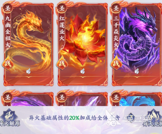 另外,在限时活动中,玩家就能有机会获得一些顶级的异火,三千焱炎火、净莲妖火这些主要是通过限时运营活动产出,建议大家关注游戏内的节日庆典,还有版本更新。能有机会把这些传说之火全部收入囊中。进入到商店中,使用特定的材料去兑换,也能有机会获得自己所喜欢的异火,优先去兑换当前阵容所需要的。此外还可以去参与焚天古灵殿等一系列秘境副本,只要把Boss打败,就能有机会获得异火核心碎片。