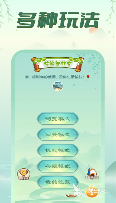 这款游戏给你精心设计一个个妙趣横生的脑筋急转弯题目,让你的大脑情不自禁地转动起来,思考答案。游戏还准备了其他趣味玩法,譬如2048、无厘头问答等,致力于勾起每个玩家的兴致。游戏提供排行榜,就是要让大家对自己的思维能力水平了然于心,并且起到鞭策大家、挑起大家的胜负欲等作用。
