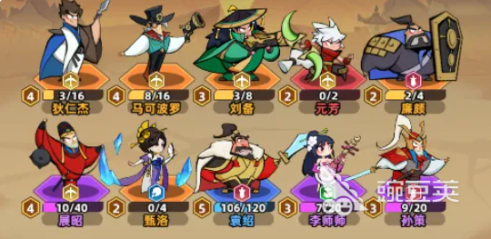 在第一个阵容当中,如果新手想要拉起来足够的输出效果的话,可以在上面直接玩5个射手的搭配,这里可以用到的就是马可波罗、狄仁杰、元芳、刘备、展昭,这样玩起来的话,可以触发的基本效果是非常强势的,后期的话还可以搭配其他的卡位,比如说如果要应对谋士,这里就可以加上甄洛这个角色,可以给阵容带来足够的血量加成,加上孙策的话,也可以带一些控制能力,这样整体对决当中的灵活性会更高一些,如果对手出现了其他的射手或者是战士的话,大家在这里要上的就是甄洛以及廉颇,两个武将在整体的武力上面物抗比较高,遇到刺客的话,大家上廉颇还是可以应对的,这个阵容相对来说有后羿跟没有后羿的版本,其实差距是比较大的。