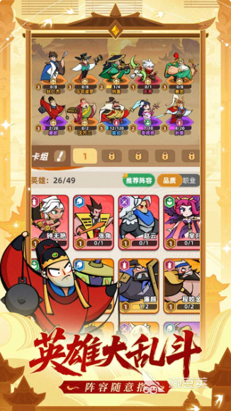 第二个阵容为大家推荐的就是战士类型的阵容,这个阵容当中大家就要注意自己的抽卡强度了,如果对于这个运气有要求的话,这个阵容其实在初期的难度上面就比较高,前期可以用到的基础武将是程咬金、张飞、马云禄、孙策以及廉颇,整体阵容在优先升级的情况下,大家可以先用张飞作为核心,他可以跟程咬金之间相互配合,这两个就是在战士角色当中比较出色的,前期一定要上满5个战士才可以触发到5人的羁绊能力,程咬金作为核心输出的话,后期再补上孙策的控制,整体的战士效果才会有足够的加成。
