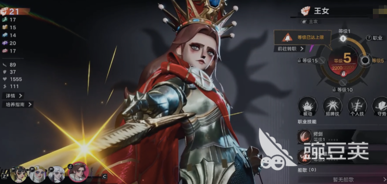 第三个给大家推荐的就是王女,王女是后期测试里面出现的一个女性角色,她在外观上面其实最亮眼的就是头上的皇冠,让大家也能很清晰的分辨出来她的身份,在游戏当中定位效果是走主攻路线的,而且攻击输出效果也是达到了非常高的一个数值,技能当中可以带的战意状态可以快速造成140%的伤害,并且在有战意状态解锁了之后,她可以发起更高的近身攻击能力,为他搭配单手剑的话,可以快速将敌人刺杀,对于一些防御比较低的小怪来说,她的攻击模式是非常强势的,第二个技能是有猛斩的效果,这个技能可以消耗她自身20%的血量,此时帮女对敌人进行攻击的话,只有单体的输出效果,但是一次性带来的输出数值达到了180%,并且在此时还可以为自身积累一层战意,战意效果基本都是她发动大招时候需要的基础状态,那么在使用大招的时候,她也可以对敌人输出基础120%伤害,之后如果这里的战意数值是大于或者是等于50的情况下,她当前的输出数值则会继续对敌人造成更高的伤害,所以她的各方面技能效果在后期有战意加成了之后是更高一些的。