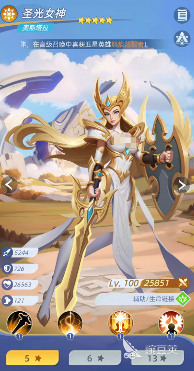 而另外一个大家可以用的神类角色就是圣光女神,圣光女神目前放在这个神魔队当中,更适合玩的是辅助,她的生命链接效果,大家也一定要用起来,用技能的时候一般是会找到生命最低的一个目标进行使用的,跟这个角色之间可以建立一个灵魂链接,并且此时可以连接到的目标都可以受到她的治疗效果,此时带来的是等同于她攻击能力上面156%的生命恢复,并且附加了10%的免伤,放在这里的话叠加到5层的时候,角色有50%的免伤,就可以很好的提升神魔队整体的生存能力了。
