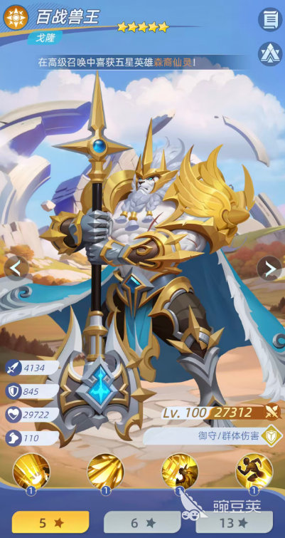 兽族群伤队里面的前排角色用的就是百战兽王,百战兽王使用自身技能的时候可以对敌方全体目标造成100%魔法伤害并有25%概率眩晕,在他伤害提升到140%的时候,对敌方附加眩晕概率会提升到31%,并有50%概率附加伤害降低,释放前百战兽王自身暴击率提高20%,而普通攻击会变为对敌方全体造成40%的伤害,并有40%概率附加减速的效果,当其中的角色受到致命伤害时,百战兽王会以生命上限20%的生命值复活,并附加攻击提升状态,这个效果相当于是复活阵容当中都会用到的一个能力了。