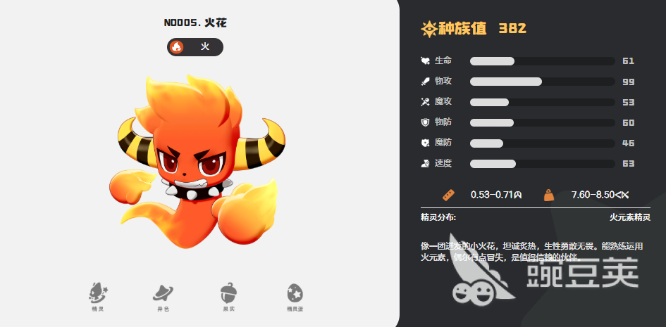 一般情况下开局能选的精灵就三只,要从火花、喵喵、水蓝蓝这三只里面选,这都是游戏系统直接赠送的新手的,而且每一只都有自己的特色,他们的元素也对应了不同的战斗风格,大家可以根据自己平时更喜欢的元素来选,先说说火花,它是火属性里潜力非常高的一个宠物,非常适合走高爆发的火系流派,定位是速攻型角色,组队的时候妥妥的主C核心,不管是什么样的阵容当中这个精灵都可以扛起队伍的输出,而且火花有个超实用的助燃机制,只要释放了火属性 技能,就能在上面叠加一层助燃状态,每一层助燃状态都能提升15%的伤害,最高的时候是可以叠加三层的,而且在叠满之后伤害会直接提升45%,所以这个时期打出来的火系伤害特别高,清图完全没有问题,就是它在技能搭配方面也有讲究,大家一定要给它带炎爆这类单体爆发技能,既能打单体高额伤害还能带动全队的群体输出,范围技能的话就推荐带燎原火,这样释放技能覆盖的范围才会足够大,伤害也不会低,如果遇到难打的BOSS,大家利用这样的技能就可以叠满助燃再放燎原火,用快节奏的打法来操纵它啦,所以大家如果选火花开局推图节奏会快很多。