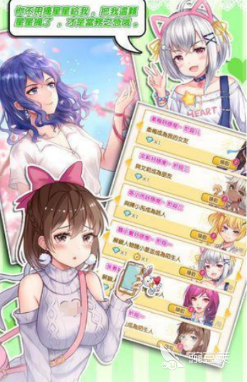 二次元风格为题材的模拟经营养成恋爱游戏,成为经纪人,负责旗下艺人的日常行程与相关训练,通过参与选秀比赛,策略规划活动的方式来培养艺人的能力,最终的目标便是将其打造成为超级顶级巨星,玩家要巧妙的平衡资源和相应的市场策略,有较多可以攻略的女性角色,比如小曼等等,每个都有不同的独特性格和相应的设定。