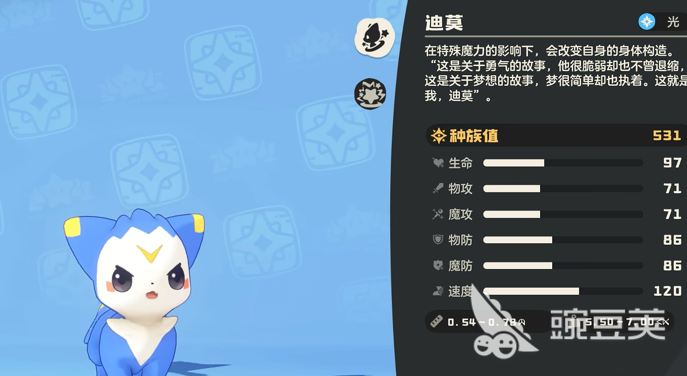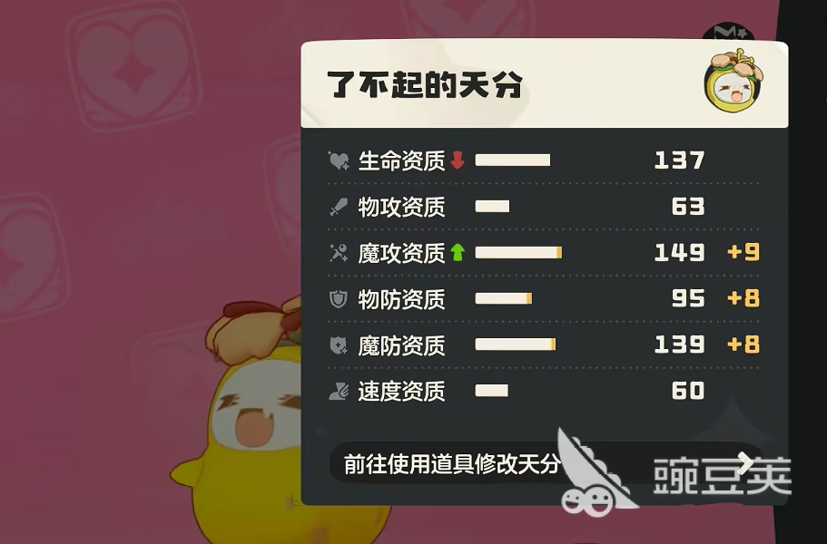 种族值在游戏里是一个极为固定的数值,它的数值与精灵的基础资质之和有关。所谓基础资质,指的是精灵基础属性面板中生命资质、物攻资质、魔攻资质、物防资质、魔防资质和速度资质这六种,也就是玩家常说的六维资质,它们的数值加起来就是精灵的种族值。要注意区分的是,这六大资质并不与精灵的具体基础属性挂钩,而是指精灵升级后所获得的属性成长。比如,若精灵的物攻资质为63,那么它升级后物攻属性数值会往上加0.63。