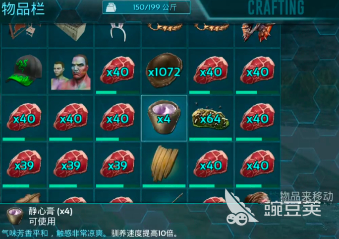 方舟进化手游当中驯服恐龙的玩法是游戏的核心特色,正是这种玩法吸引了无数玩家,但其中有一个小技巧就是秒训药的使用,不少伙伴留言询问”方舟生存进化手游秒训药配方“,今天小编就来揭秘一下有炫耀的秘密,在游戏当中,这个道具的正确叫法是“静心膏”,拥有着芳香的气味,而且触感非常冰凉,可以让驯服速度提高10倍,简直就是恐龙驯服的“神器”。