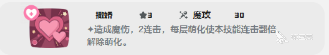 首选技能为【撒娇】。该技能具备两次攻击判定,在菊花梨处于萌化状态下,总伤害提升至原始数值的200%。这一倍率增幅是当前版本萌系精灵中极为突出的爆发手段,使其在开启萌化后的单回合输出能力跃居同类型前列。故该技能不可替代,必占一格核心输出位。