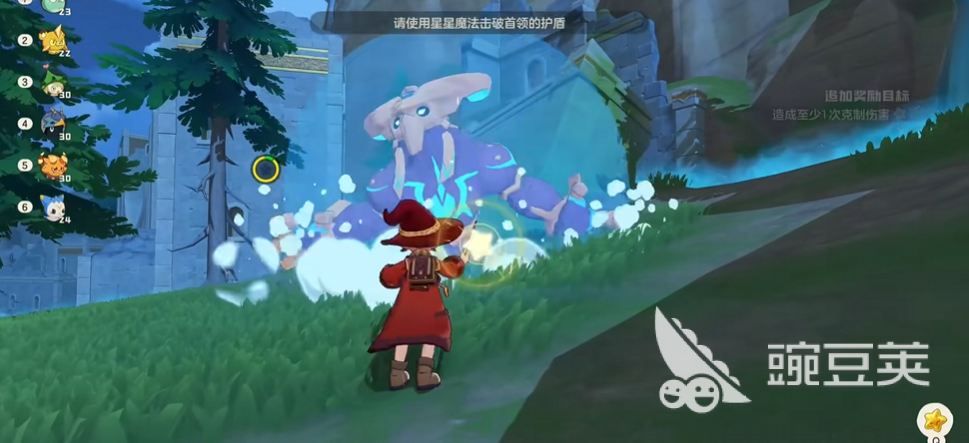 2、布莱克:位于废墟圣所上方区域。开场即发动直线冲撞,随后释放范围技“山崩地裂”,伴随持续出现的地刺陷阱。玩家可通过精准跳跃实现无伤闪避;击破其初始护盾后进入二阶段,BOSS将获得增益状态,此时应优先采用高频率魔法攻击,草系精灵因其对布莱克存在属性克制优势,成为最优选择之一。